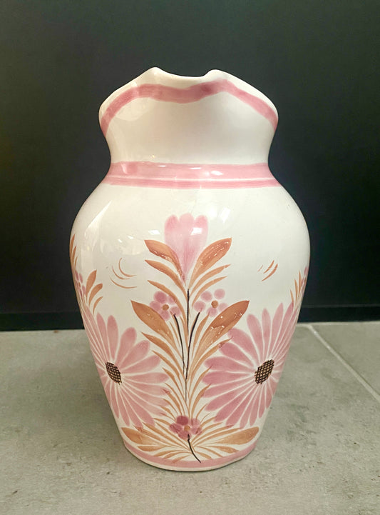 Vase « HENRIOT - QUIMPER », fleuri rose en céramique - Années 70