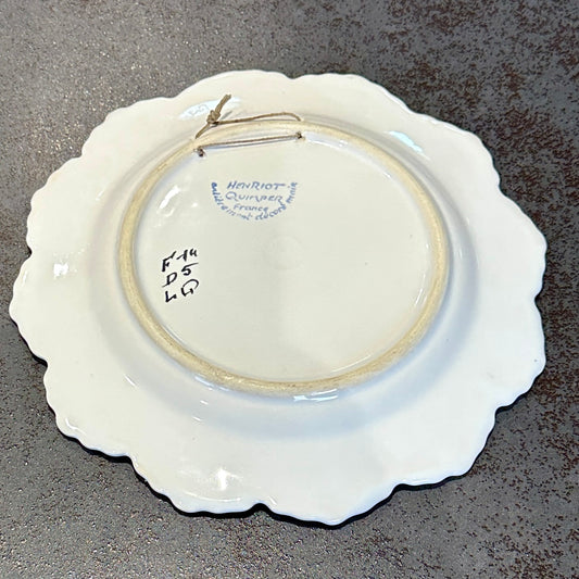 Assiette bretonne ancienne Henriot Quimper – Faïence décor bretonne femme en coiffe – Ø 24,5 cm