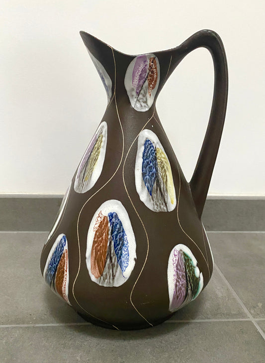 Pichet en céramique Bay Keramik, décor Kongo par Bodo Mans, années 60.