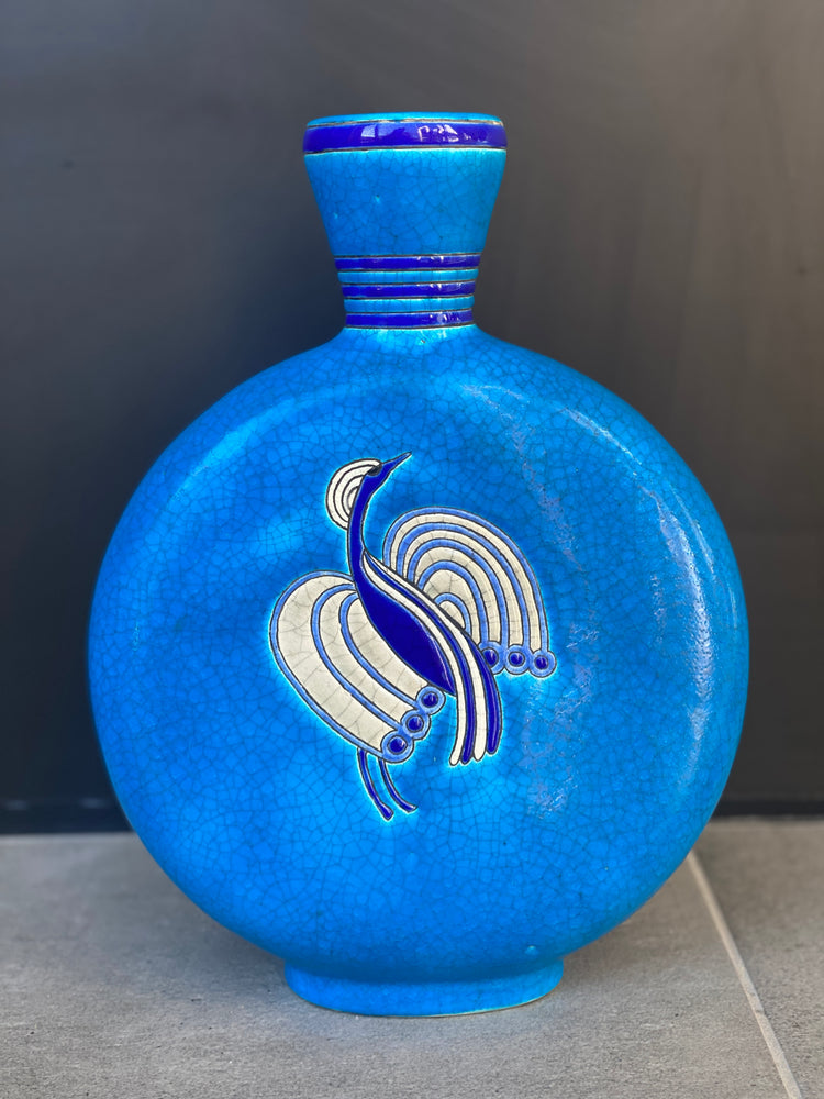 Vase Art Déco Saint Graal en Verre Soufflé & Argent Gravé – Motif Animalier Mythologique