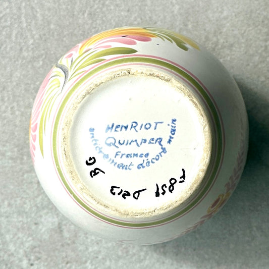 Pot à Cornichons en Faïence Bretonne Henriot - Motif Fleurs Roses