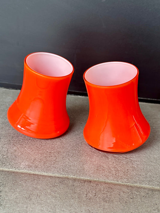 Lot de 4 verres culbuto vintage en verre orange – Années 70 – Parfait état