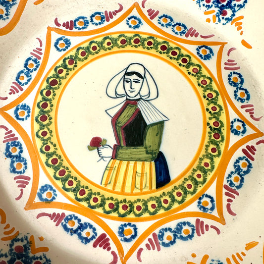 Assiette bretonne ancienne Henriot Quimper – Faïence décor bretonne femme en coiffe – Ø 24,5 cm