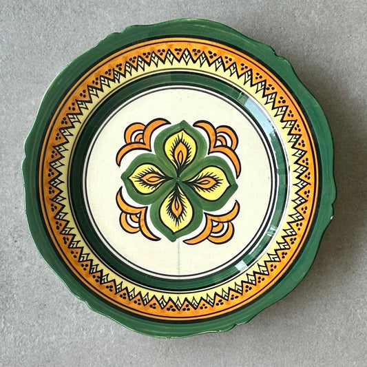 Assiette faïence bretonne Henriot Quimper – motif géométrique vert-jaune-orange - Ø 24 cm