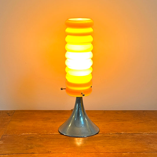 Lampe Vintage Orange – Base Tulipe Chromée & Abat-Jour en Verre