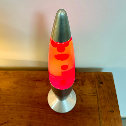 Lampe Psychédélique Lave Vintage - Métal et Verre - Rouge et Blanc