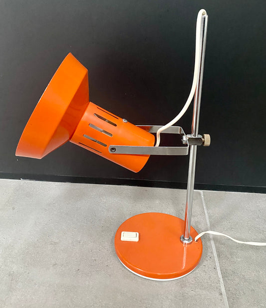 Lampe de bureau métal laqué orange et chrome - vers 1970