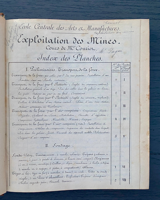 Exploitation des Mines. Cours de Mr Couriot à l'Ecole Centrale des Arts et Manufactures. Lithographies