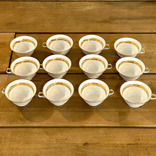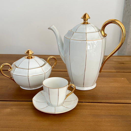 Service à café en porcelaine fine de Limoges - Circa 1960 - Blanc et or - 29 pièces
