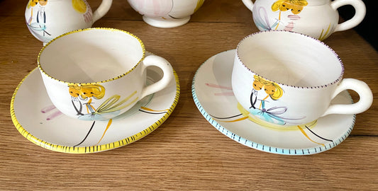 Service duo à thé ou café par l'atelier CERENNE à VALLAURIS, vers 1955.