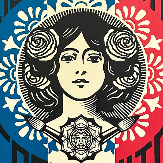 Lithographie Originale Obey Giant - signée 2023 - Liberté, Égalité, Fraternité
