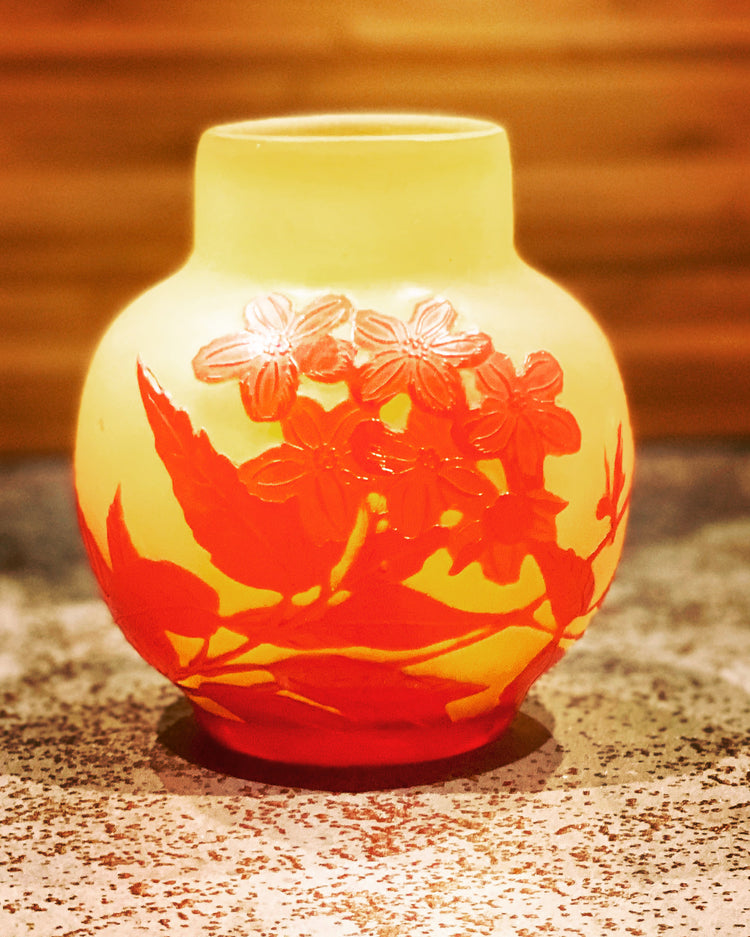 Soliflore signé DAUM Nancy - verre marmoréen orange – Art Nouveau