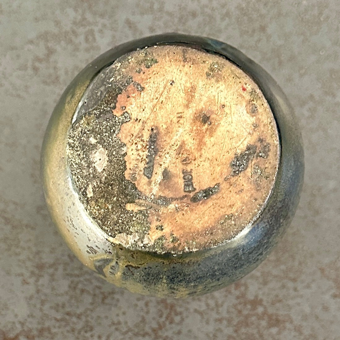 Authentique vase vintage en grès fabriqué au Portugal par Campos Filhos, Alvarães, vers 1950–1970. Superbe glaçure aux tons terreux (vert, brun, nuances sombres) et bande décorative en relief ceinturant la partie supérieure. Estampille sous la base : “Campos Filhos – Alvarães – Made in Portugal”.